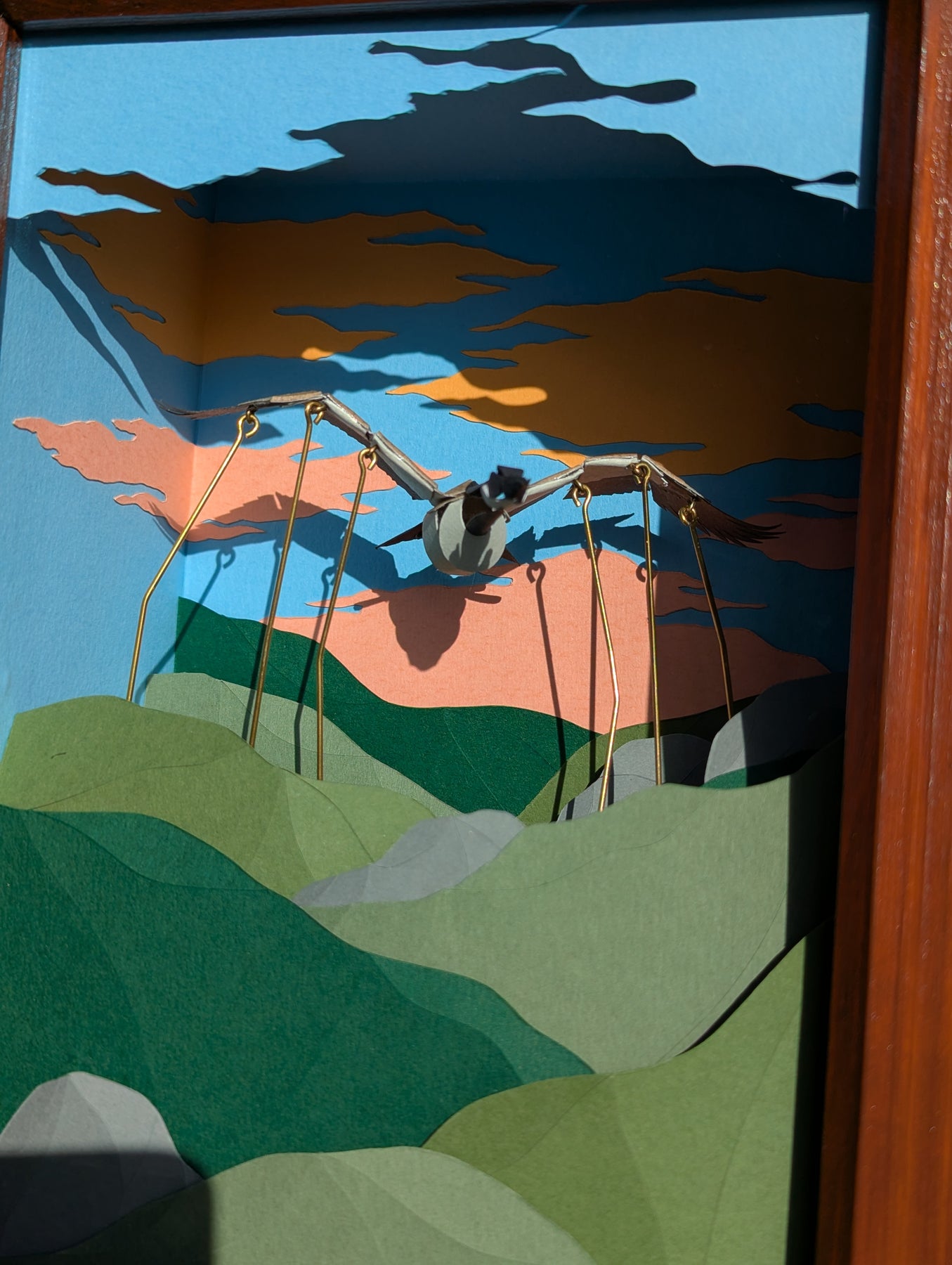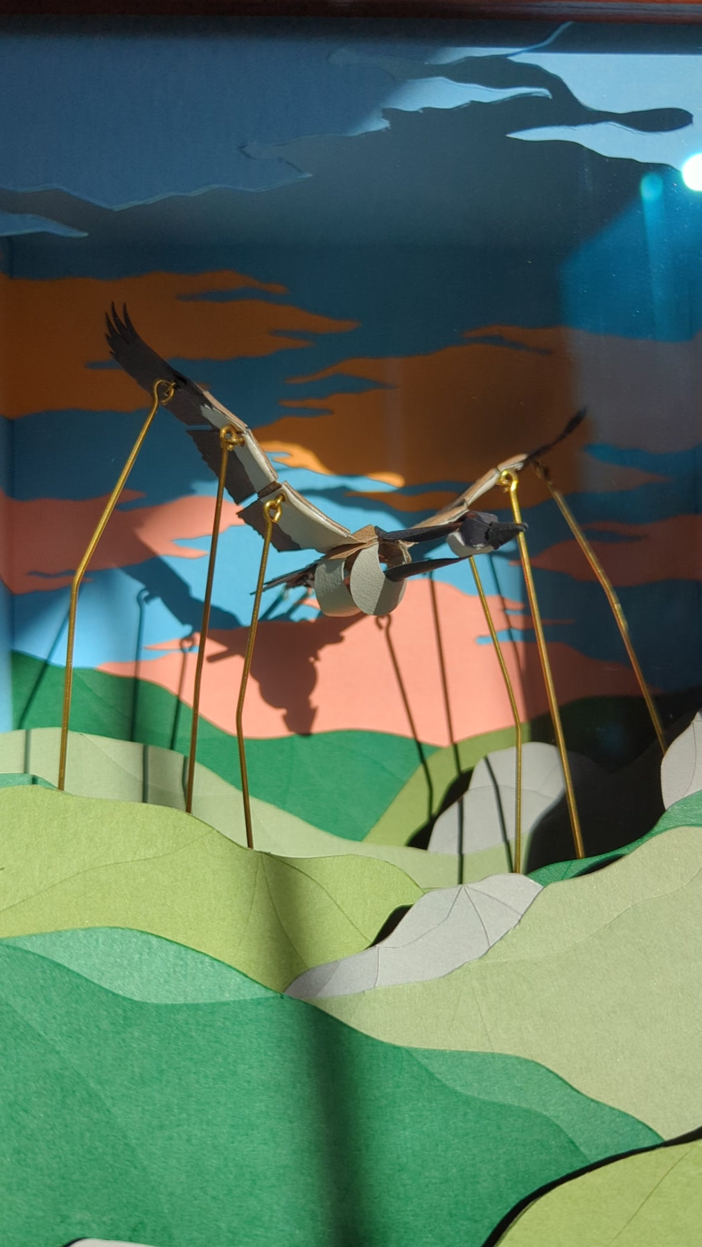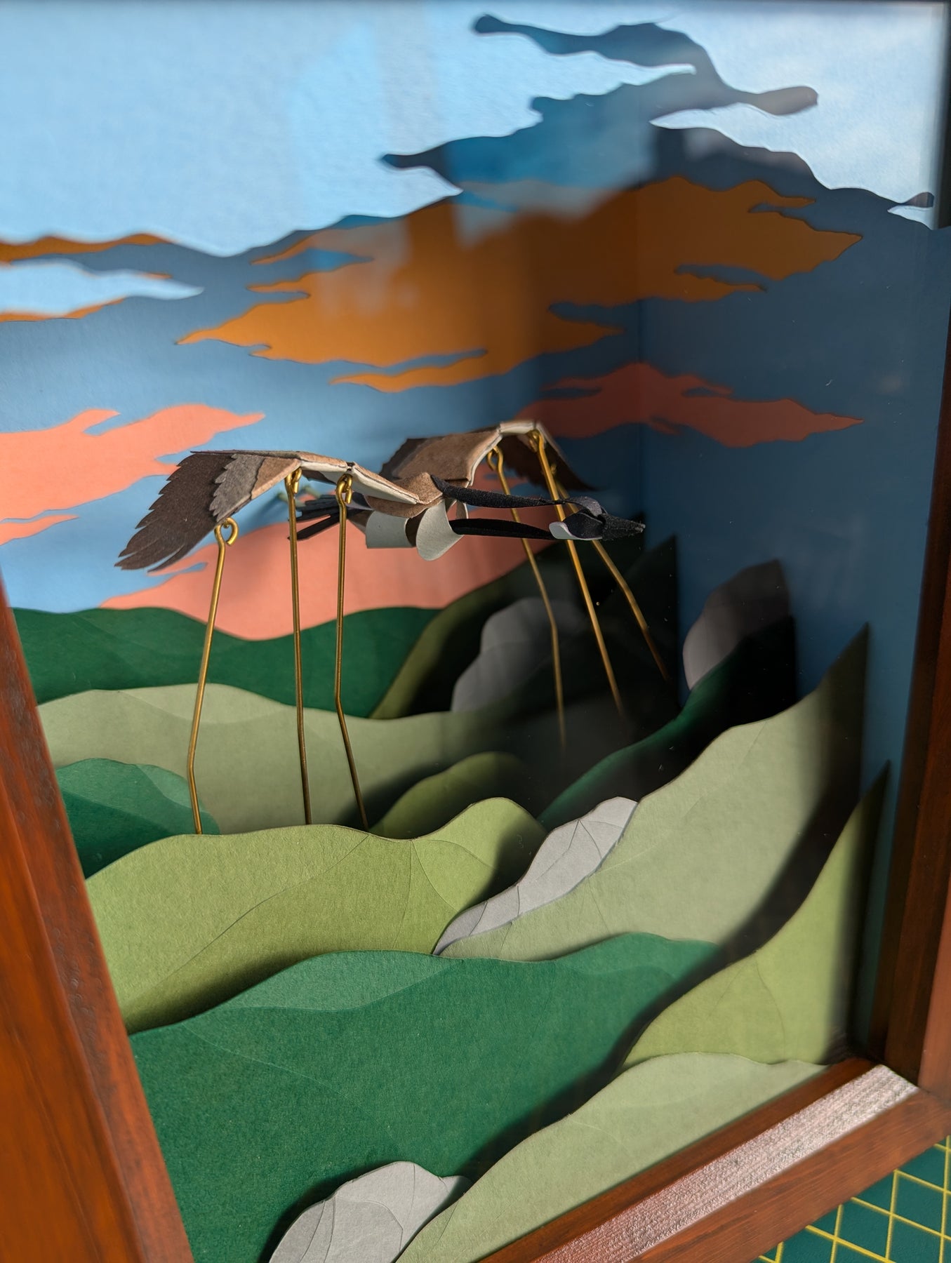 Little Honker. Hand-cranked Kinetic Paper Sculpture. Framed.