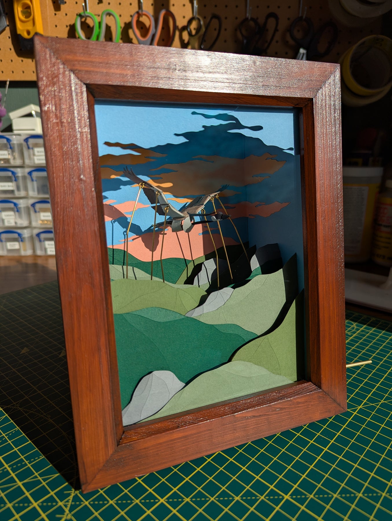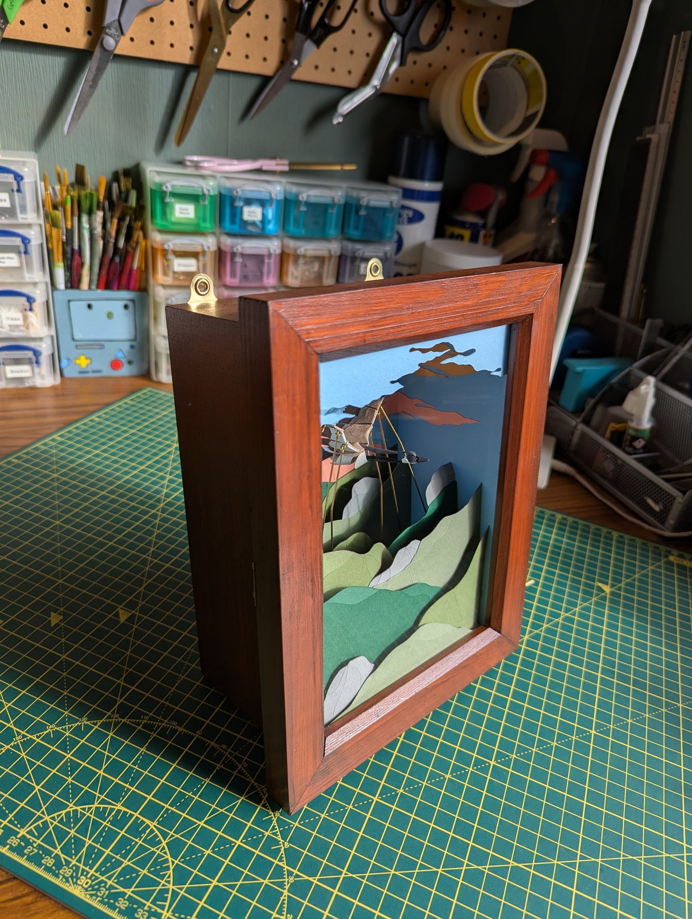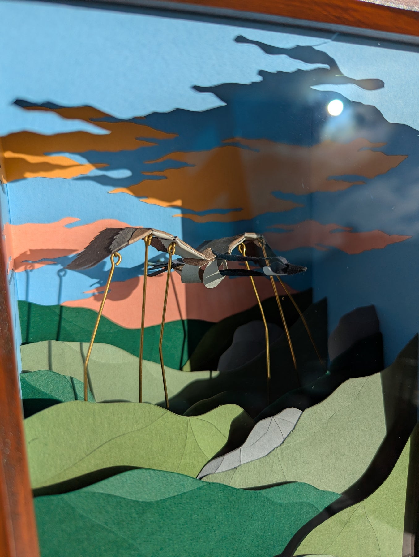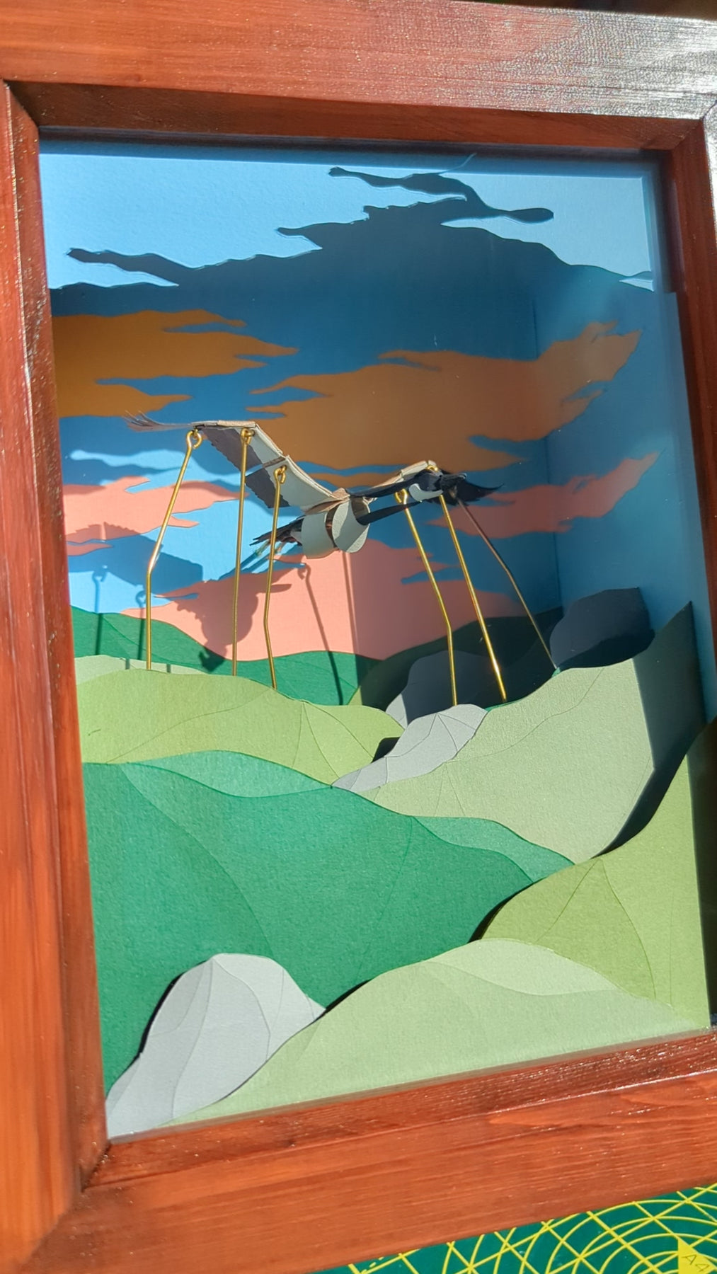 A scaled down version of Lucy's hand-cranked, kinetic, paper, framed sculptures.