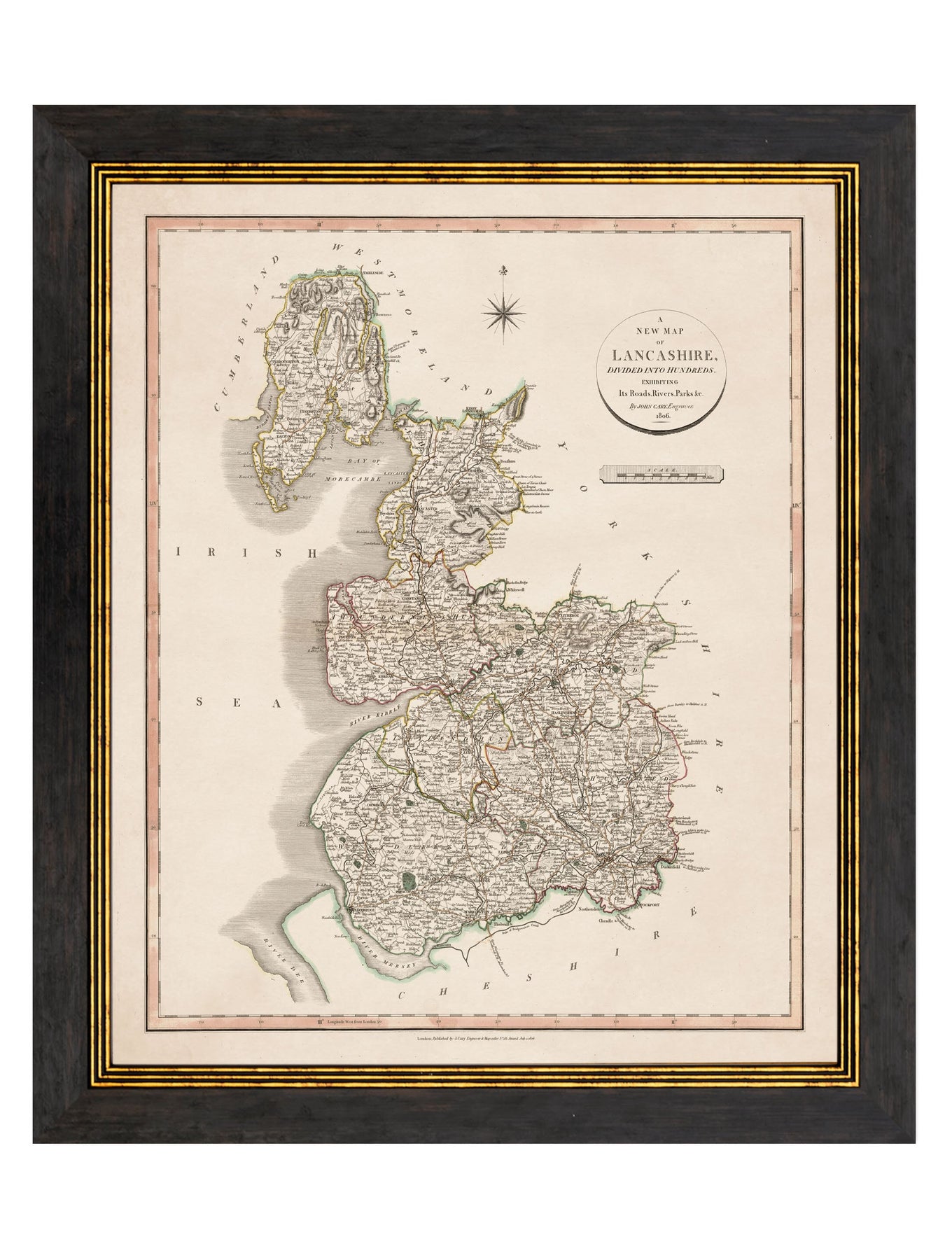 Bring some local history to your interior design scheme with these beautifully restored English county maps from 1806. We’ve digitally restored each of these delightful maps here in our studio in Lancashire, including enhancing their original hand-coloured details to return them to their former glory.
