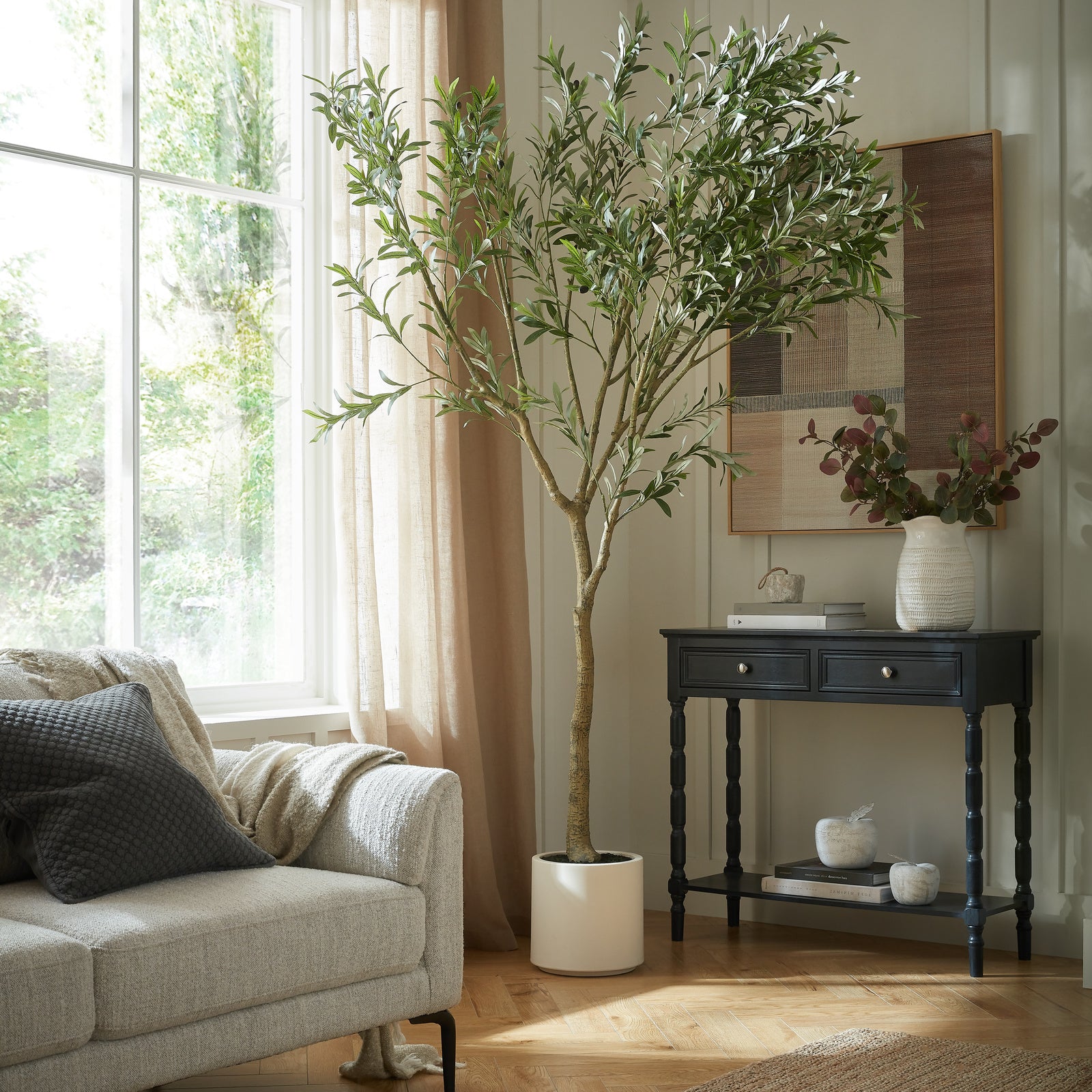 Consider styling alongside decorative ceramic vases in neutral glazes, subtly patterned table lamps with linen shades, or framed wall art that harmonises with the console’s tones.